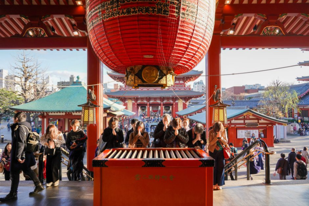 นับล้านคนในช่วงวันที่ 1–3 มกราคม ผู้มาเยือนจะสั่นกระดิ่ง โค้งคำนับ โยนเหรียญลงกล่อง และอธิษฐานตามธรรมเนียม