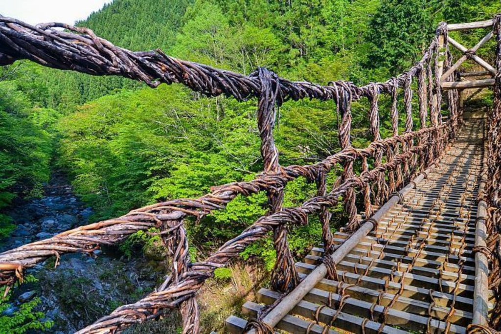 สะพานเถาวัลย์ Kazurabashi เป็นอีกหนึ่งแลนด์มาร์กสำคัญของภูมิภาคชิโกกุ สะพานที่สร้างจากเถาวัลย์และไม้ทอดข้ามหุบเขาลึกสร้างความรู้สึกตื่นเต้นทุกครั้งที่ก้าวเดินลงไปด้านล่างจะเห็นสายน้ำไหลผ่าน ทำให้ประสบการณ์การข้ามสะพานกลายเป็นทั้งความสนุกและความท้าทายที่น่าจดจำ