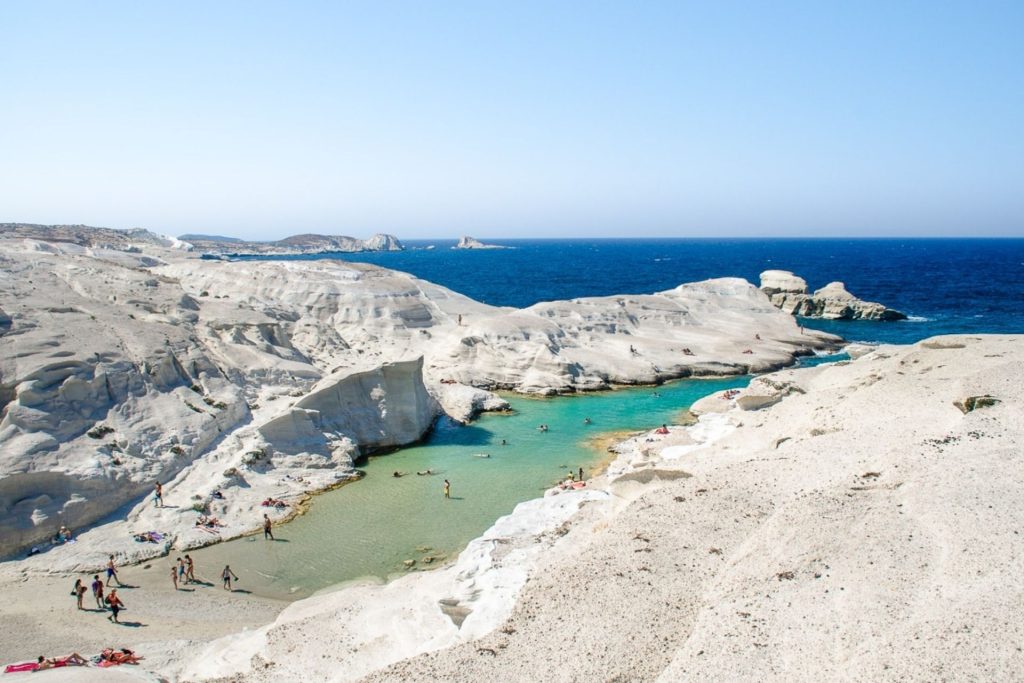 หนึ่งในสถานที่ที่มีชื่อเสียงที่สุดของเกาะ milos คือ Sarakiniko Beach ชายหาดหินสีขาวที่มีรูปร่างโค้งเว้าเหมือนพื้นผิวดวงจันทร์ เมื่อแสงแดดสะท้อนกับน้ำทะเลสีฟ้าใส จะเกิดภาพที่โดดเด่นและแตกต่างจากชายหาดทั่วไปในยุโรป ทำให้ที่นี่กลายเป็นจุดถ่ายภาพยอดนิยมของนักท่องเที่ยวทั่วโลก