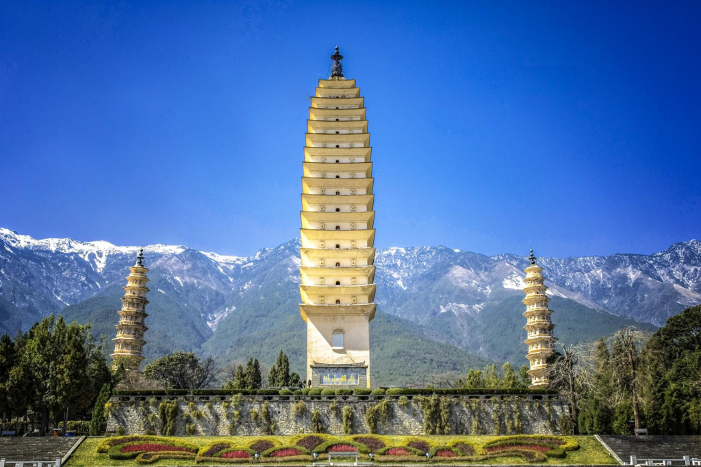 ตระการตากับ “เจดีย์สามองค์แห่งวัดฉงเซิง” หนึ่งในสัญลักษณ์สำคัญของเมืองต้าหลี่ เจดีย์ทั้งสามตั้งตระหง่านเรียงตัวเป็น รูปสามเหลี่ยมท่ามกลางฉากหลังของภูเขาชางซาน (Cangshan) และทะเลสาบเอ๋อร์ไห่ (Erhai) อันงดงาม เจดีย์องค์กลาง มีความสูงถึง 69.6 เมตร ถือเป็นหนึ่งในเจดีย์โบราณที่สูงที่สุดในจีน โดยสร้างขึ้นในสมัยราชวงศ์ถังกว่า 1,000 ปีมาแล้ว