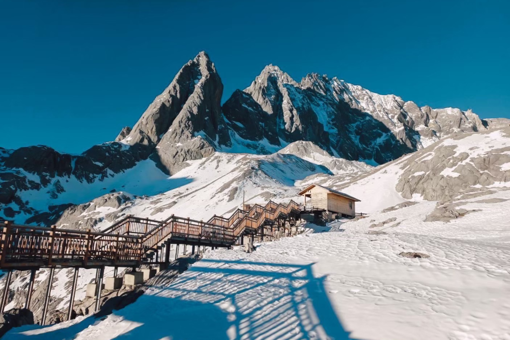 รับยามเช้า ณ ภูเขาหิมะมังกรหยก สถานที่ท่องเที่ยวระดับไฮไลต์ของ เมืองลี่เจียงที่โดดเด่นด้วยยอดเขาปกคลุมด้วยหิมะ ตลอดทั้งปี เปรียบเสมือนมังกรขาวขนาดยักษ์นอนทอดตัวกลางท้องฟ้า เป็นแหล่งรวมความหลากหลายทางวัฒนธรรม ของชนเผ่าท้องถิ่น เช่น ชนเผ่าหน่าซี (Naxi) ที่อาศัยอยู่โดยรอบ ได้สัมผัสอากาศเย็นสดชื่น ขึ้นกระเช้าไฟฟ้าสู่จุดชมวิวสูงกว่า 4,500 เมตร