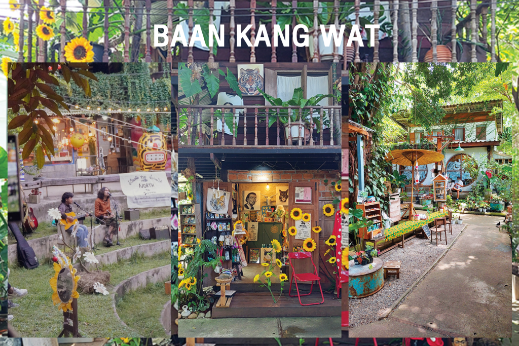 BAAN KANG WAT IS A SMALL ART-FOCUSED, NATURE-INSPIRED COMMUNITY IN MUEANG CHIANG MAI. IT FEELS LIKE A COZY CRAFTSMEN’S VILLAGE, WITH SIMPLE WOODEN LANNA-STYLE HOUSES AND LOTS OF GREENERY. IT’S PERFECT FOR STROLLING, RELAXING IN CAFE AND FINDING UNIQUE HANDMADE CRAFTS.