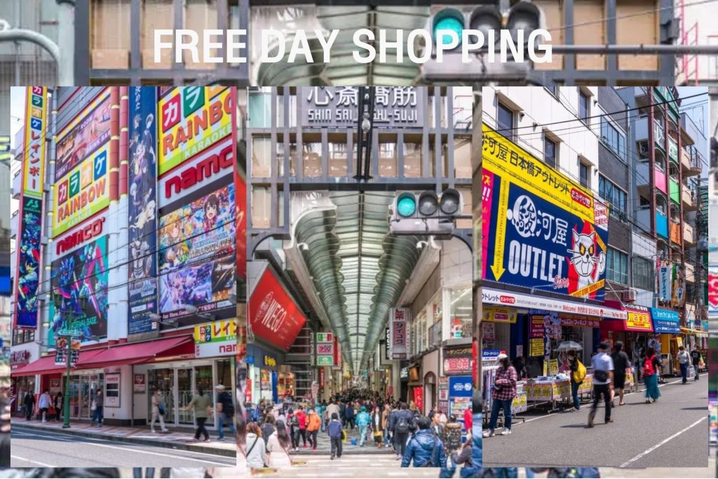 อิสระช้อปปิ้งทั้งวัน ขอแนะนำ แหล่งช้อปปิ้ง ร้านอาหาร และสถานที่ท่องเที่ยวสำหรับเดินเล่นริมน้ำ เหมาะกับการช้อปปิ้งแบบสบาย ๆ และพักผ่อน ได้แก่ Shinsaibashi Shopping Arcade, Nipponbashi , Namba Parks, Amerikamura (NO BUS SERVICE)