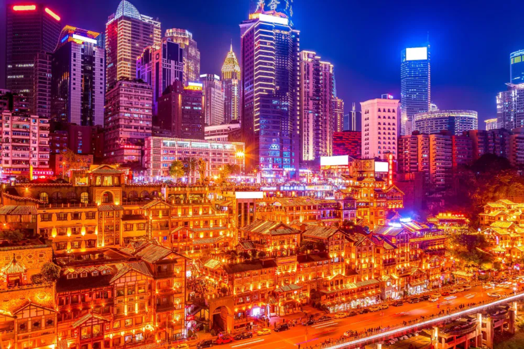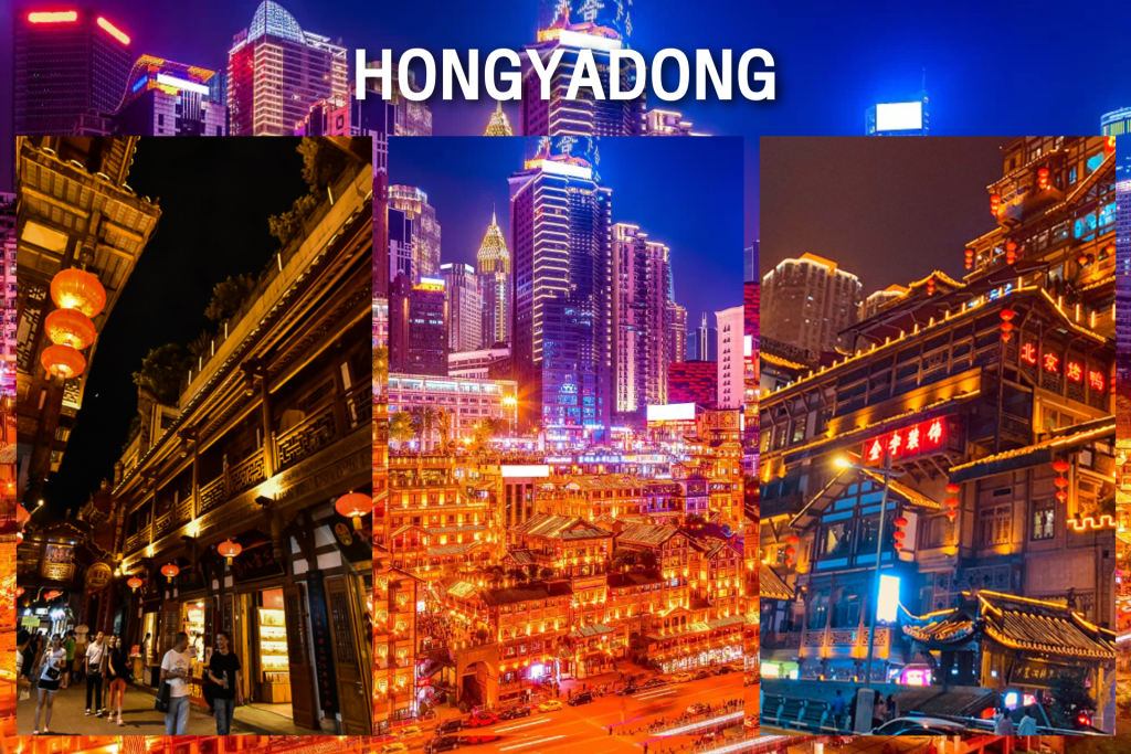 บันทึกภาพบรรยากาศยามค่ำคืน ณ ตลาดหงหยาต้งช้อปปิ้งมอลล์ขนาดยักษ์แบบ สถาปัตยกรรมจีนโบราณที่มีการยกใต้ถุนสูง มีถ้ำ ศาลา สะพาน และทางเดินเชื่อมต่อกันเป็นทั้งตลาดของกิน แหล่งช้อปปิ้ง จุดชมวิวริมแม่น้ำเพลิดเพลินกับการถ่ายภาพเป็นที่ระลึกยามค่ำคืนที่มีการเปิดไฟสวยงาม สร้างบรรยากาศสุดโรแมนติก