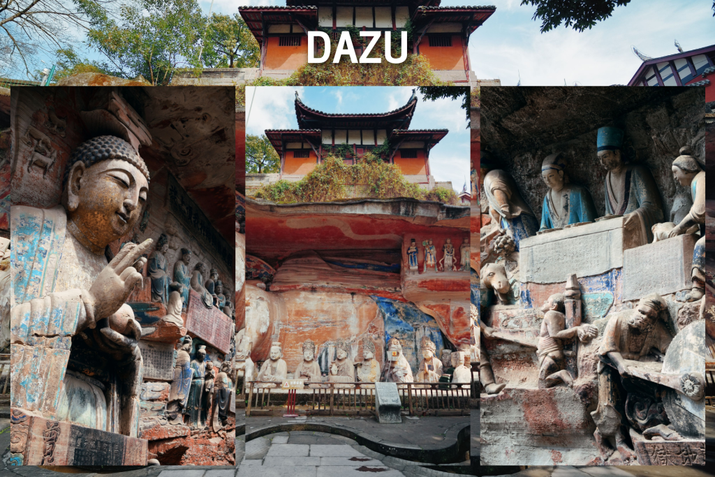 นำท่านเดินทางสู่ เมืองต้าจู๋ แหล่งมรดกโลกโดยองค์การยูเนสโก ประกอบด้วยงานแกะสลักบนหน้าผาหินจำนวนมาก ที่สร้างสรรค์ขึ้นอย่างวิจิตรบรรจงจากความเชื่อในพุทธศาสนา เต๋า และขงจื๊อ แสดงถึงเรื่องราวชีวิตผู้คนและเทพเจ้า มีอายุเก่าแก่กว่าพันปี