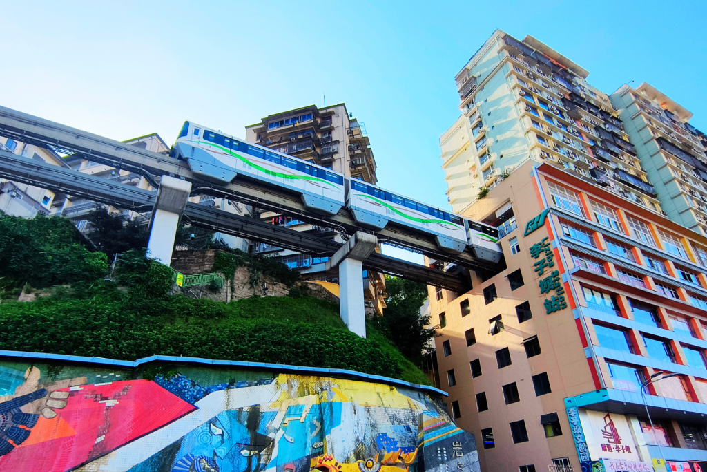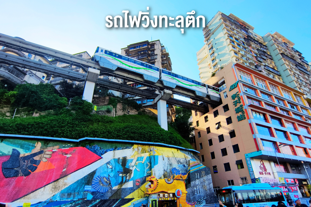 ถ่ายรูปกับ “รถไฟวิ่งทะลุตึก” เป็นรถไฟทะลุตึก 19 ชั้นซึ่งเป็นอาคารที่พักอาศัยของประชาชนรถไฟฟ้าสายนี้ถูกสร้างขึ้นโดยไม่ต้องรื้อถอนตึกดังกล่าวถือเป็นอีกหนึ่งแลนด์มาร์คของเมืองฉงชิ่ง