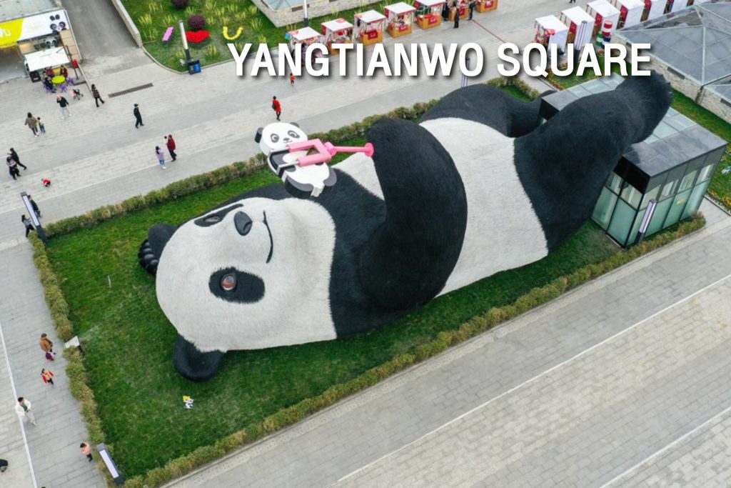 เยือน “จัตุรัสหย่างเทียน วู่” ชมรูปปั้นผลงานศิลปะรูป แพนด้าถ่ายเซลฟี่ที่ตั้งอยู่กลางจตุรัส มีความยาว 26 เมตร กว้าง 11 เมตร สูง 12 เมตร และหนัก 130 ตันนอนหงายอยู่บนพื้น เท้า ยกขึ้นจับไม้เซลฟี่สีชมพูเล่นถ่ายเซลฟี่จากนั้น ชมวิวที่ “สะพานหนานเฉียว” สไตล์โบราณตกแต่งประดับประดาด้วยแสงไฟนีออน ชมการแสดงน้ำตาสีฟ้าน้ำในแม่น้ำเป็นสีฟ้าสวยงาม (อาจมีการงดการแสดงขึ้นอยู่กับสภาพอากาศ)