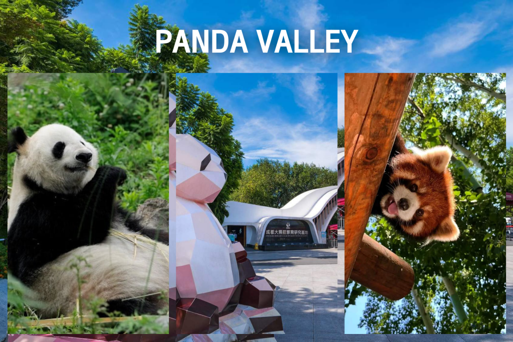 ยามบ่าย เพลิดเพลินกับความน่ารักของ หุบเขาแพนด้า(ใช้เวลาเดินทางประมาณ 1 ชม.) พบกับสัตว์โลกแสนน่ารัก ณ ศูนย์วิจัยการพัฒนาแพนด้า ครอบคลุมพื้นที่ 2004 เอเคอร์ตั้งอยู่ในหม่าเจียโกวใน เมืองตูเจียงเอี้ยน ติดกับอุทยานน้ำแห่งสหัสวรรษของตูเจียงเอี้ยนและภูเขาชิงเฉิง ที่ศักดิ์สิทธิ์ของดาวเจียง